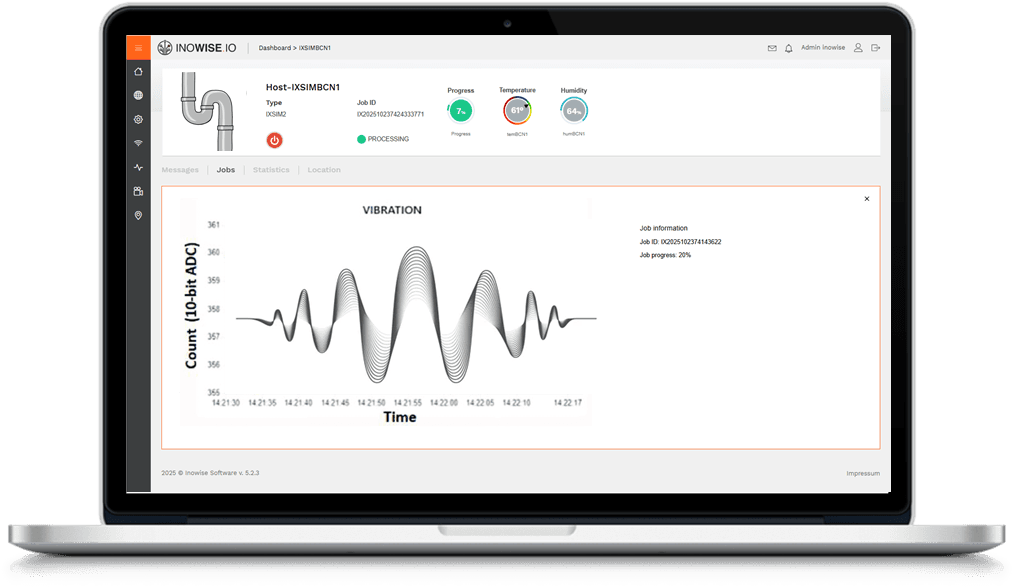 INOWISE.IO uses vibration sensors enhanced with Artificial Intelligence to detect irregular vibration patterns in machines, motors, pumps, or any technical asset with moving parts.